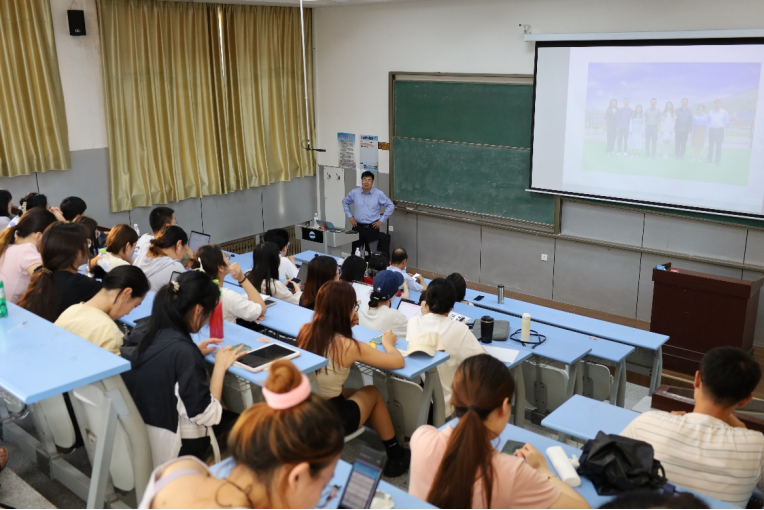 夏季学期高端学术报告“大变局中的欧洲及与我省合作情况”在博文楼219室举行。报告由山东省委外事工作办公室欧洲处周家伦处长主讲,德语系主任綦甲福教授主持。德语系部分教师、本科生及研究生到场聆听报告,部分出国交流的研究生及2023级研究生线上参加。