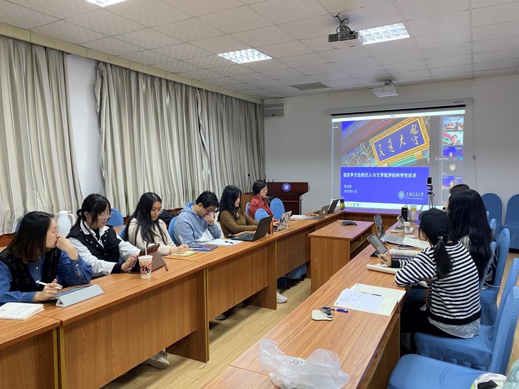 在问答环节,与会者踊跃提问,与尚教授展开了广泛而深入的交流。在交流过程中,尚教授就文学研究中“阐释”与“诗学”的概念分享了自己的学术思考,并与参会师生深入探讨了语料库文学研究的相关问题。本次讲座深入浅出,学术氛围浓厚,令在座师生受益匪浅。