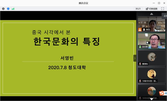 朝鲜语系师生带来了题为“比较文化学视角下的韩国文化特征”的精彩学术讲座。此次讲座由朝鲜语系主任崔花老师主持,朝鲜语系多位老师以及学生通过腾讯会议参与了本次讲座。