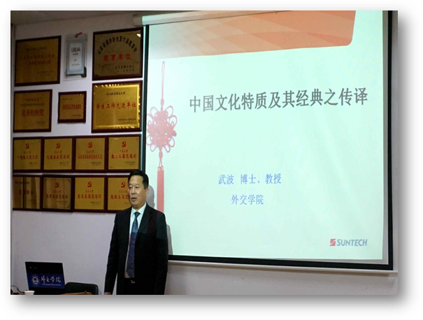 举行外国语言文学系列学术讲座第61讲。外交学院英语系教授武波,应邀为外院师生做了“中国文化特质及其经典之传译”的专题学术讲座。院长助理布占廷主持讲座,学院部分老师及研究生参加此次讲座。
