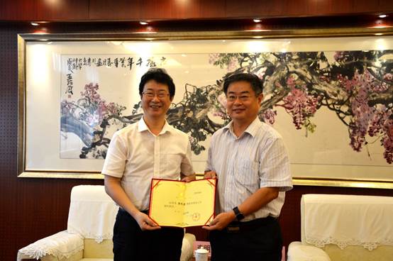 兼职教授。校长夏东伟出席仪式并代表学校向查明建颁发聘书。