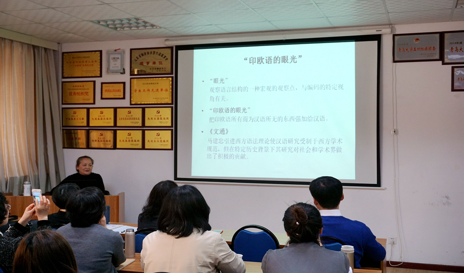 徐莉娜教授从《马氏文通》讲起,追溯汉语主语的起源,梳理学界对汉语主语研究的历史脉络,对比了英汉主语的异同,审视了汉语主语的可释性与不可释性,探讨了汉语主语研究摆脱印欧语的眼光束缚的必要性,说明了主语研究语言类型学眼光转向的必然性。在此基础上,她提出了在语言类型学视域下英语主题句转译汉语话题句的翻译模式,为英译汉句子结构的调整提供了相应的解决方法。语言可分为四种类型:主语突出的语言、主题突出的语言、主语和主题都突出的语言、以及无主语和无主题的语言。针对这四种类型,徐老师提出了操作性强的翻译模式,并结合实例详细说明,例句鲜明,通俗易懂,在师生中引起了共鸣。