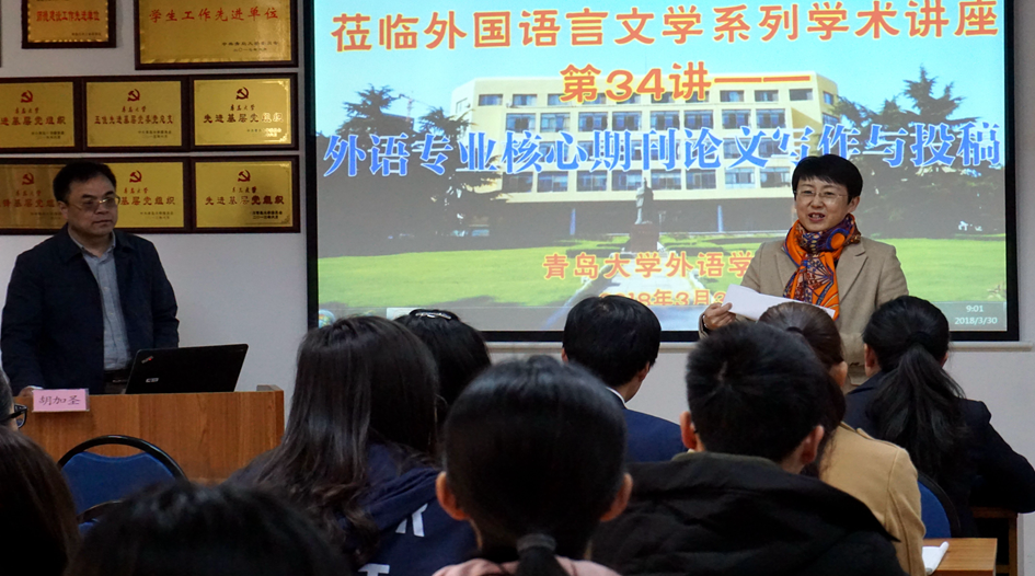 “外国语言文学系列学术讲座”第34讲,并在博文楼312会议室作《外语专业核心期刊论文写作与投稿》的专题讲座。卞建华院长主持。副院长李明学、院长助理布占廷、部分中青年教师以及学院部分研究生共60余人聆听了讲座。