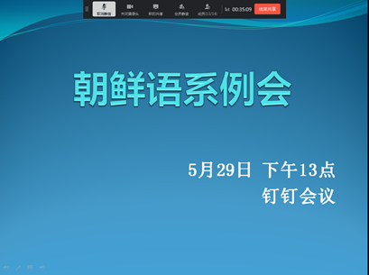 朝鲜语系通过钉钉网络平台召开了近期工作交流视频会议。会议由系主任崔花主持,韩语系全体教师参加了会议。