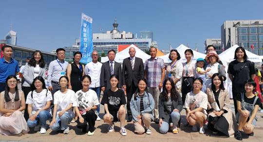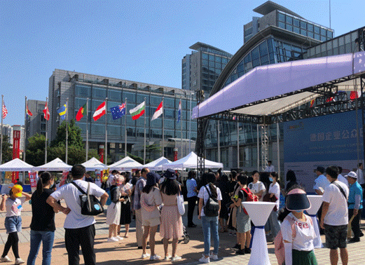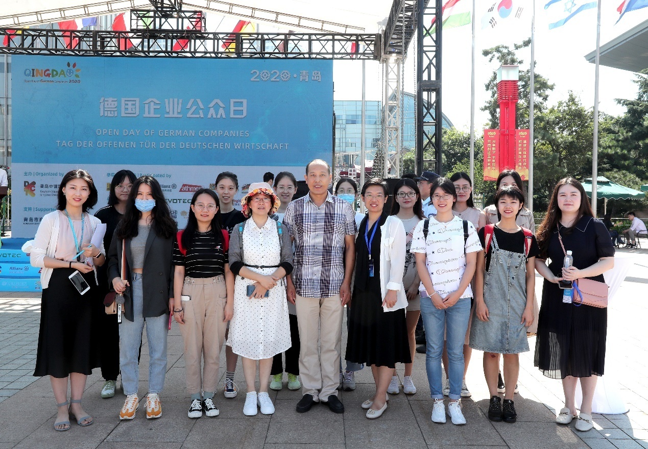 德语系在山东省与德国巴伐利亚州签署的鲁巴教育合作协议框架下,培养了大批高水平人才,26年来为中德两国各领域合作与交流输送630余名毕业生,已成为青岛市乃至山东省发展地方经济、开展国际合作的优质德语人才库。在本次活动现场,不仅有在各展台前与德国企业和机构积极交流沟通的德语系学生,也能看到在现场做志愿者服务的德语系同学的身影,还有在展台前向市民及游客介绍自己公司或机构的产品、技术、服务的诸多德语系毕业校友,其中有德国巴伐利亚州山东代表处首席代表刘玉(1998届)、德国胡赫(青岛)换热水箱有限公司总经理邹帅华(2000届)、德国工商联合会青岛代表处首席代表石蕴琳(2002届)、德国欧克林格亚洲事业部总经理孙波(2003届)等。