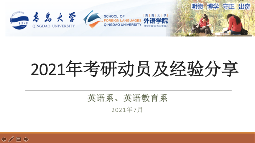 2021年7月15日下午,英语系、英语教育系在博文楼217教室联合举办考研经验交流会。本次交流会采取线上、线下结合的方式进行,五位成功考取硕士研究生的17级同学向英语系、英语教育系的近二百名学弟学妹们分享成功经验。三上悠亚在线
