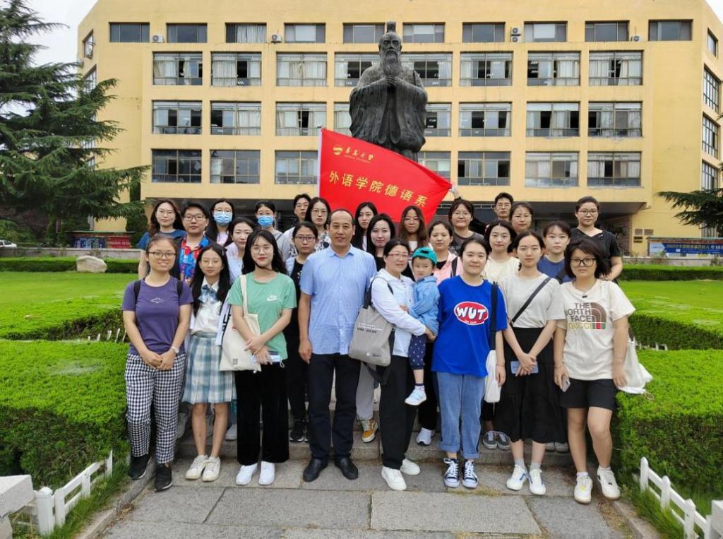 德语系按照疫情防控要求向学院提出申请,学院大力支持,由系主任綦甲福教授和研究生教研室主任刘惠宇老师带队,带领本科生和硕士生代表参加活动。