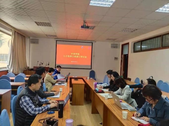 院长卞建华,副院长娄永强、布占廷及各语系负责人参与研讨,教务处刘洋老师莅临指导。
