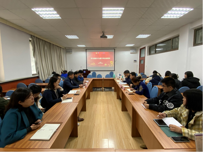 “外事帮”党支部(学生第四党支部)在博文楼312会议室举办支部共建联合党课。校党委常委、宣传部部长吴世珍为两个党支部的40余名党员上了一堂党的十九届六中全会精神专题党课。