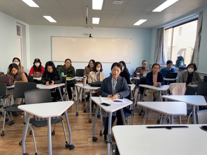 会前,党支部同志自学了《十九届六中全会公报》,《习近平总书记给北外老教授的回信》,《着力提升教学科研融合发展能力》,《如何讲好中国故事,解决好“失语就要挨骂”的问题》,等学习材料。会议开始,崔花同志总结了前一阶段党支部工作的得失。讲述了学习的体会和心得,“教师应将中国文化的内容自然而然地融入到外语教育中,引领学生能够通过中西方传统文化的对比,不断增强自我意识、提升自我文化认同、培育文化自信,从而凸显高校外语教育的文化使命,实现立德树人的目的”。