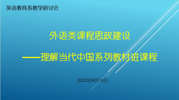 本次会议是英语教育系开展的教学研讨活动之一,推进“理解当代中国”系列教材进课程为英语教育系的课程思政建设理顺了思路,此次研讨会达到了预期的效果。