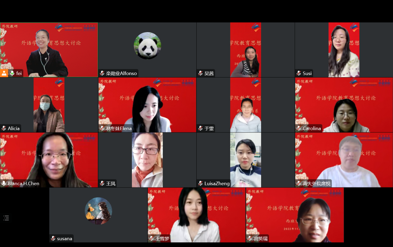 王海青副书记参加日语系教育思想讨论会。日语系主任杨剑、参加副主任杜雪丽、学科负责人张科蕾、第一教研室主任冯静、第二教研室主任郝靓、日语系全体教师以线上线下相结合的形式参加讨论。在认真研读三上悠亚在线