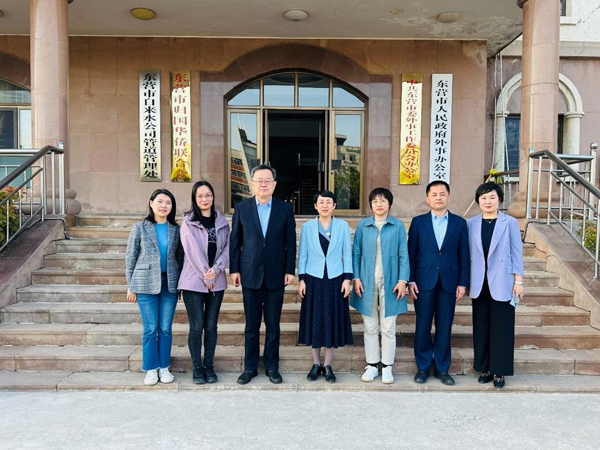 近年来在人才培养、科学研究和服务社会等方面取得的成绩。接下来,双方就实习实践、翻译等方面的合作进行深入了深入探讨。参加活动的还有东营市外事办副主任贾晖、副主任徐燕、调研员陈延秋和綦跃彬,以及翻译室张燕主任。