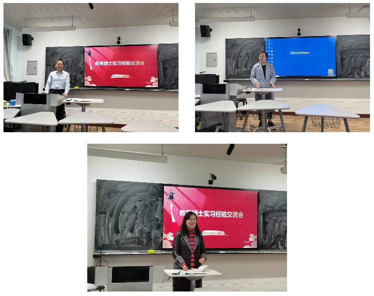 2021级四位教育硕士分享了白云山学校的领导和指导老师对此次实习的重视,给每一位教育硕士配备了指导老师,提供既专业又耐心的指导;她们还总结了实习期间的切身感受以及对教师工作酸甜苦辣的体会,剖析了英语教师的责任感和使命感。另外,她们谈到了教师工作以及班级管理工作中的一些经验、不足以及今后努力的方向。她们发自肺腑、切合实际的发言,让每一位与会者都深有感触、受益匪浅。