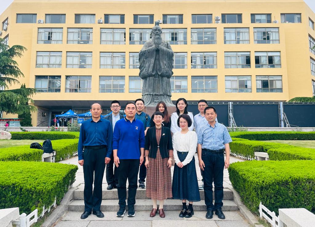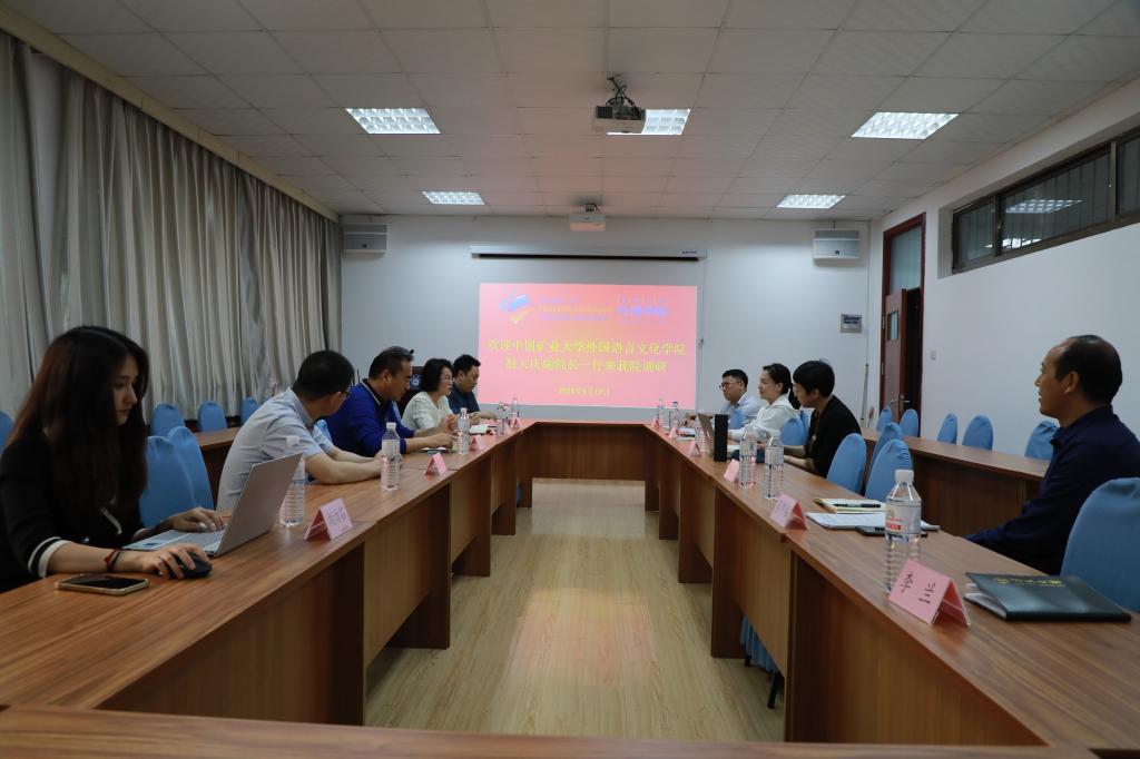 进行工作调研。院长卞建华、副院长布占廷、院长助理曹杉、德语系主任綦甲福、英语系教授王乐和本科教学办主任李兰参与了本次调研交流。