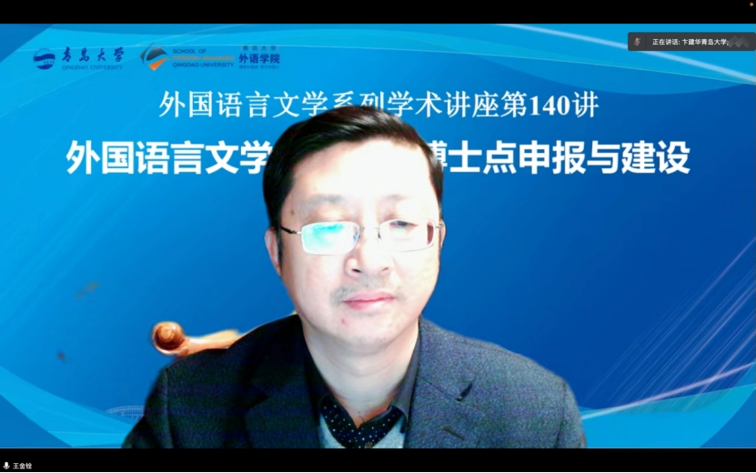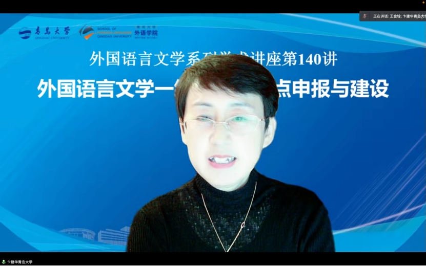 接下来,王教授提出,未来发展思路应进一步对接国家重大战略、主动服务区域经济社会发展;发挥综合性大学多学科优势,拓展学科内涵,推动学科交叉;主动融合新文科建设,致力于培养创新型、复合型卓越外语人才;优化学科方向,聚焦基础研究与应用研究,促进文化传承与传播、发挥国际学术交流优势、融入中国特色话语体系、顺应哲学社会科学发展主流。