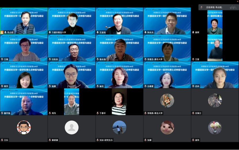 通过腾讯会议举行了外国语言文学一级学科博士点申报与建设讲座。学院班子、学科负责人、学科骨干等40余人参加了此次讲座,人文社科处钟永光处长、研究生院姜辉副院长应邀出席,卞建华院长主持讲座。