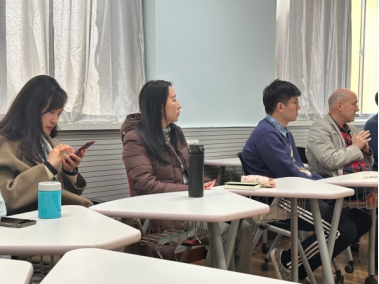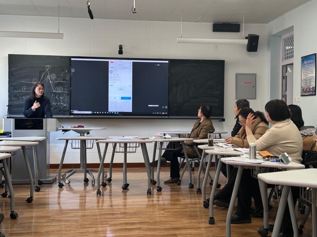 在“一课一案”的推进落实讨论环节,张群老师和牛聪琳老师分别以一年级和二年级的综合英语课程为例,介绍了将“理解当代中国“的相关内容引入课程教学的过程与效果,并就实施过程的具体情况提出疑问,供在场老师共同研讨。
