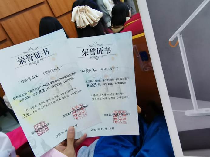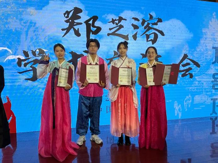 朝鲜语系20级学生刘芷倩、雷雨晴荣获三等奖,22级学生贾兆康、曾茹月荣获优秀奖,朝鲜语系李香芬老师、白春爱老师分别获得优秀指导教师奖。