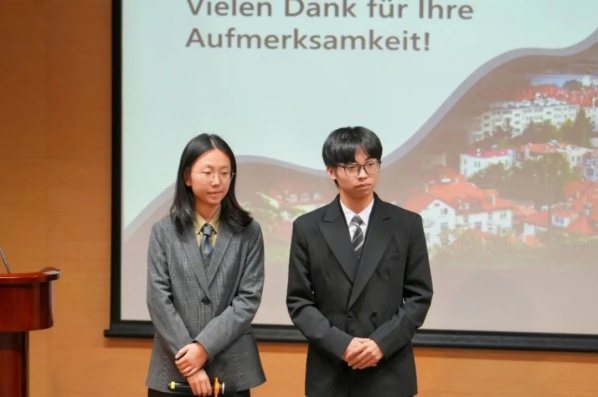 决赛内容包括3分钟演讲和4-5分钟的答辩。在比赛中,选手们以德语演讲的形式生动展示调研成果,阐述对语言在城市历史文化演进中所起作用的思考,并回答评委提出的问题。