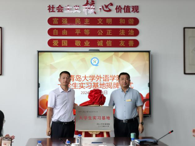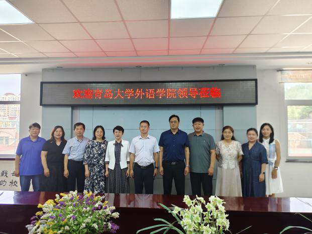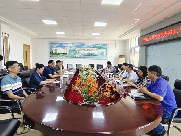 办学情况,孙永爱书记和任成志校长对挂职教师英语教育系系主任秦硕谦老师的挂职工作表现给与高度评价。双方就本科生见习项目、教学实践、研究生实习基地的建设以及教研合作项目的开展等议题进行了广泛交流,为未来的合作项目制定了初步的框架。在孙书记和任校长的带领下,外院一行参观了崂山三中校园,体验浓郁的校园文化。