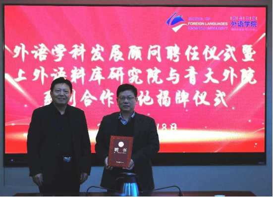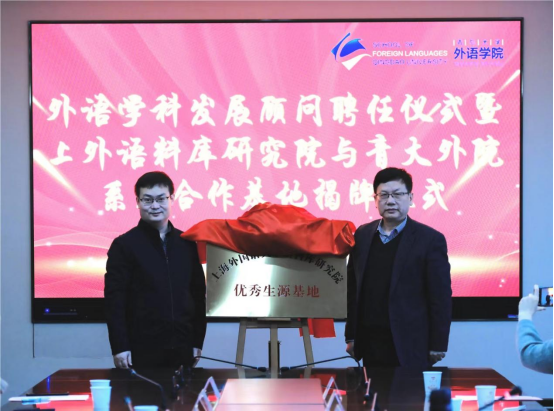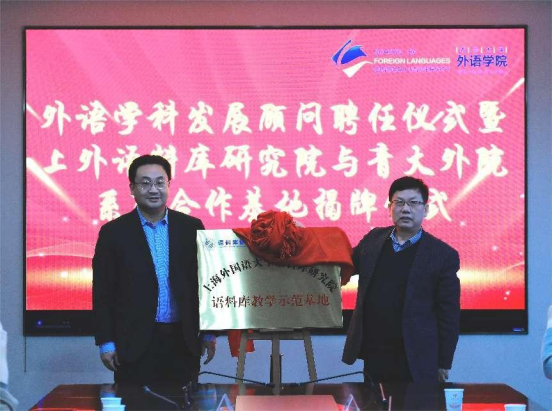 在会议中心302会议室隆重举行外语学科发展顾问聘任仪式暨上外语料库研究院与青大外院系列合作基地揭牌仪式。上海外国语大学校长助理、语料库研究院院长胡开宝教授,三上悠亚在线