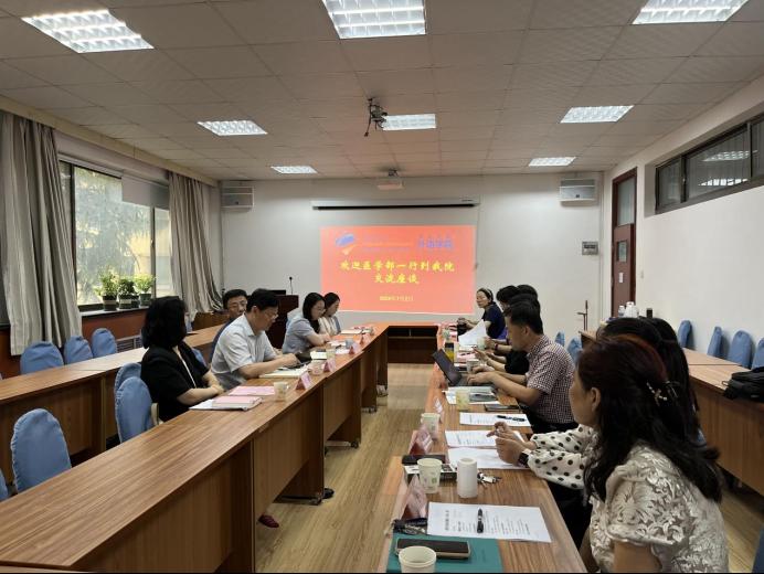 党委书记陈崇研、副书记王海青、副院长宫英瑞、布占廷、娄永强、西语系主任陈皓、西语教研室主任王斐、党政办主任贾旭、科研和研究生办主任岳蕾,医学部任贺副部长(主持工作)、李冰副部长、科研管理与国际合作办公室主任王胤、医学部本科教学与留学生管理办公室主任王晶、附属医院科研与外事工作部副主任刘静参加会议。