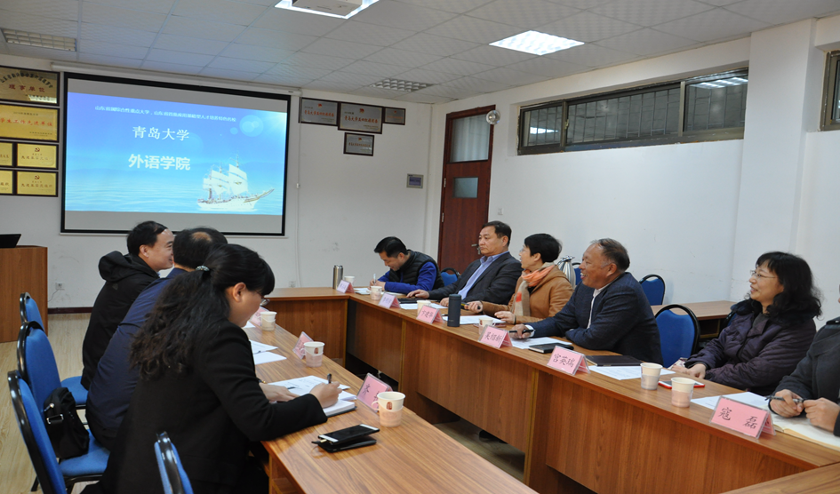 学院党政领导对齐鲁工业大学外国语学院同行来校交流表示欢迎。卞建华院长简要介绍学院事业发展基本情况以及学院近年来在本科教学、科研平台搭建、创新实践项目等方面的一些经验和做法,重点对“英语+大数据”、“翻译人才创新实验班”等情况作了介绍。牟晓燕副书记介绍了学生管理工作,尤其对“外事帮”、荣誉体系建设和学生考研等作了说明。