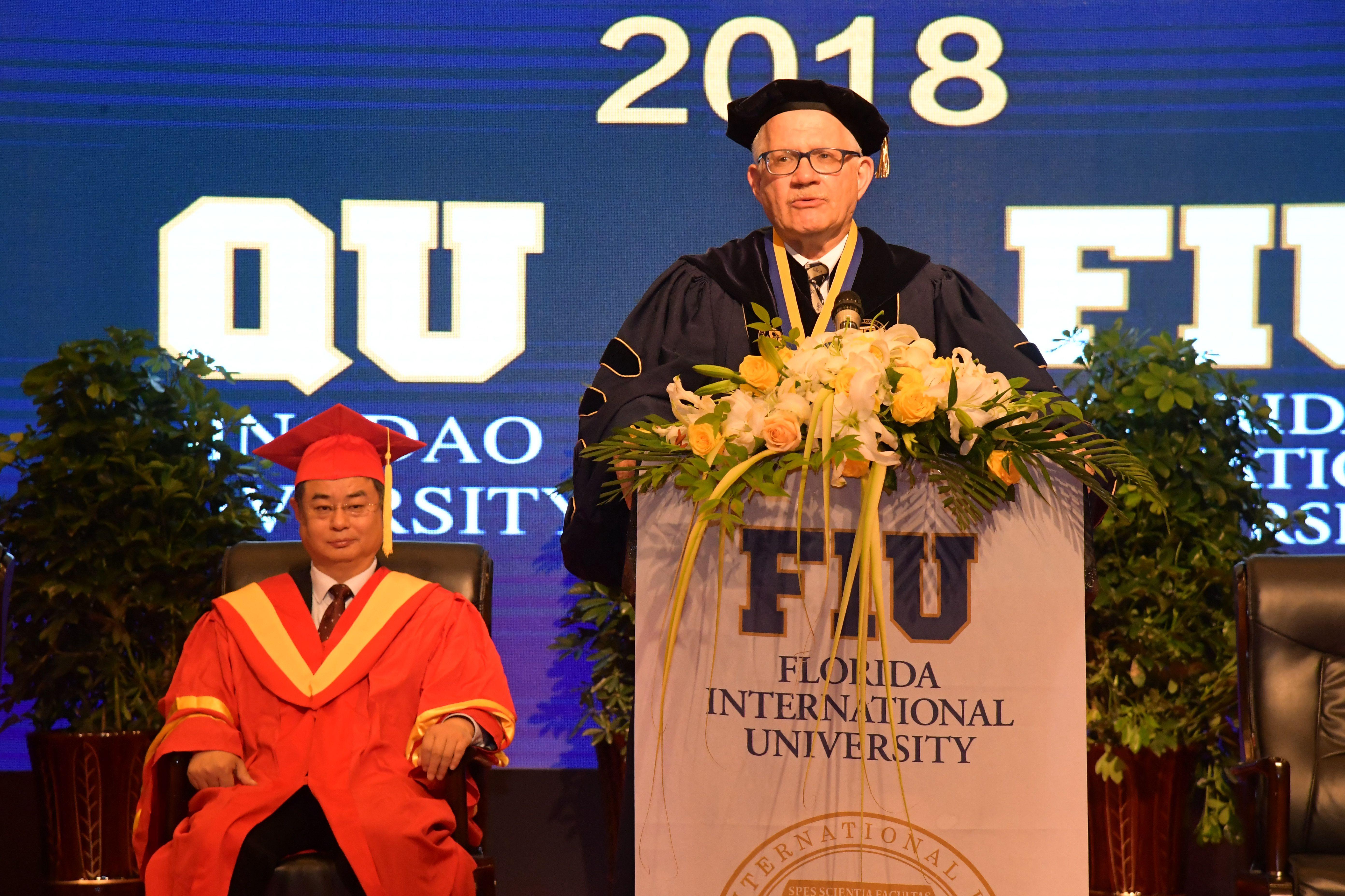 夏东伟在致辞中简要介绍了双方联合举办西班牙语专业(拉美贸易方向)本科双学位教育项目的发展情况,向佛罗里达国际大学、向为学生们成才付出辛勤劳动的双方教职员工和家长亲友们表示感谢;向圆满完成学业的毕业生们表示祝贺。他对毕业生们提出四点希望:一是坚守与时代同脉的高远理想。二是永葆与时代同行的家国情怀。三是练就与时代同进的综合素养。四是争做世界文化交流的推动者。发挥专业所长,做中华文化的传播者、世界文化交流的推动者,为建设人类命运共同体的伟大梦想贡献自己的力量。