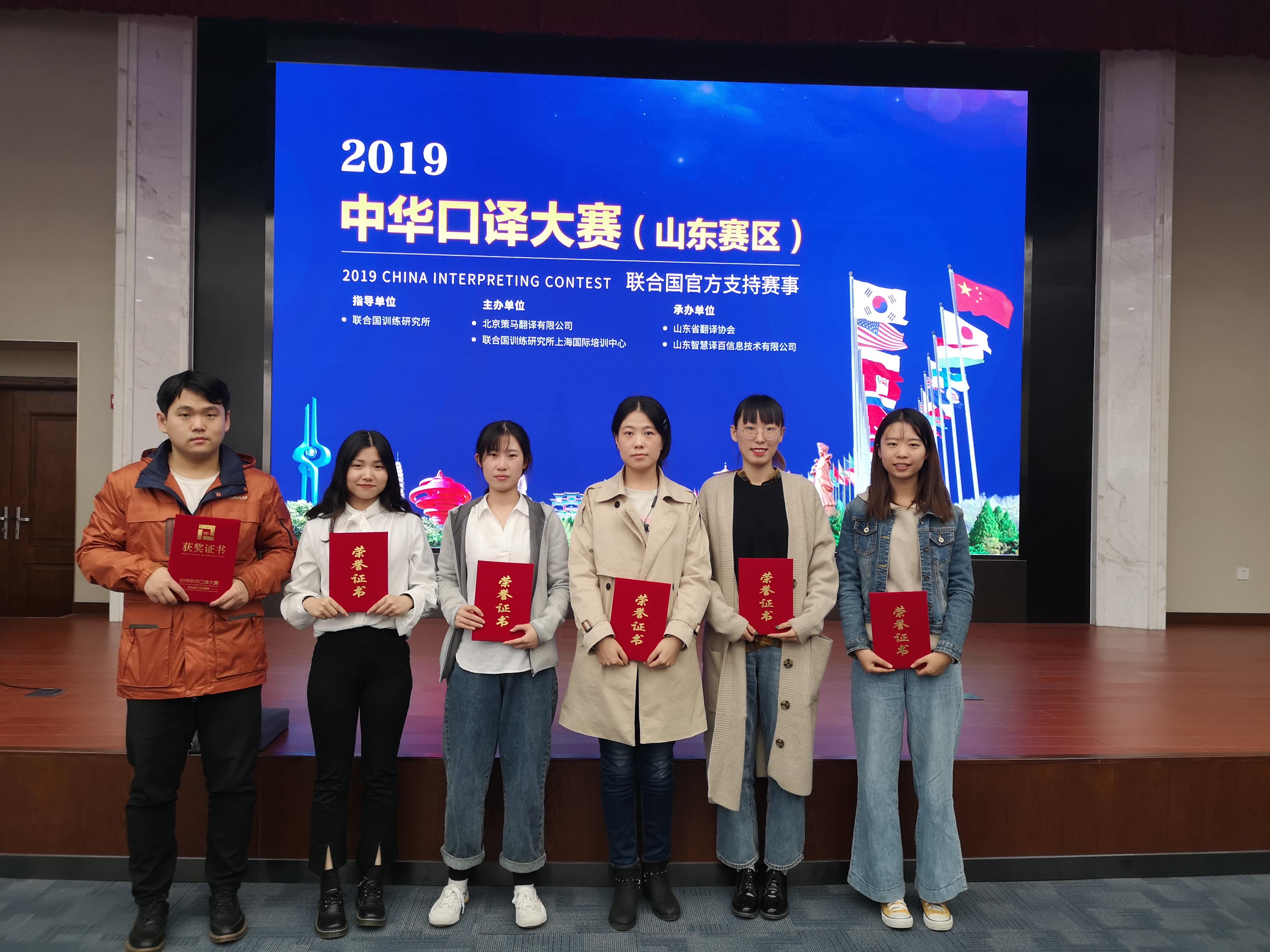 参赛七名研究生,在带队老师贾伟老师的指导下,发挥了奋勇争前、力争上游的精神,在比赛中取得好成绩,为大赛评委与观众展现了青大学子的风貌。其中19口译班的范文楚获得三等奖,取得参加全国口译大赛的资格。
