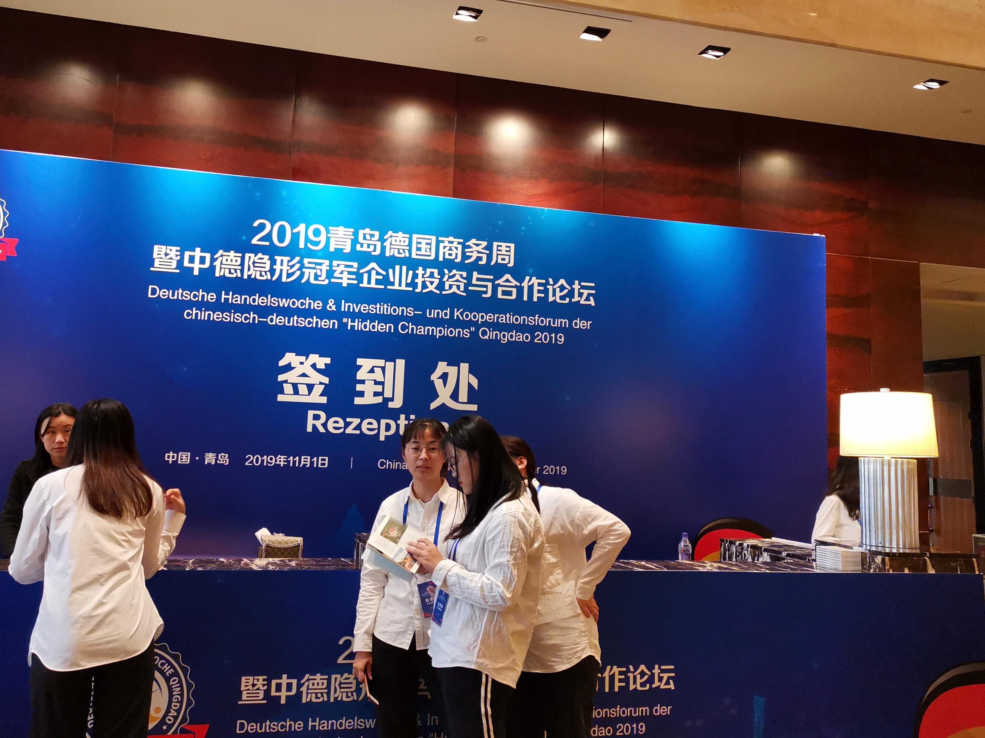 2019年11月1日上午,2019年青岛德国商务周暨中德隐形冠军企业投资与合作论坛拉开帷幕。受合作实习单位中德交流合作协会委托,德语系共派出2016级和2017级本科共20名志愿者,为活动提供会谈交传翻译、商务考察陪同翻译、德国专家接待及其他语言保障服务。