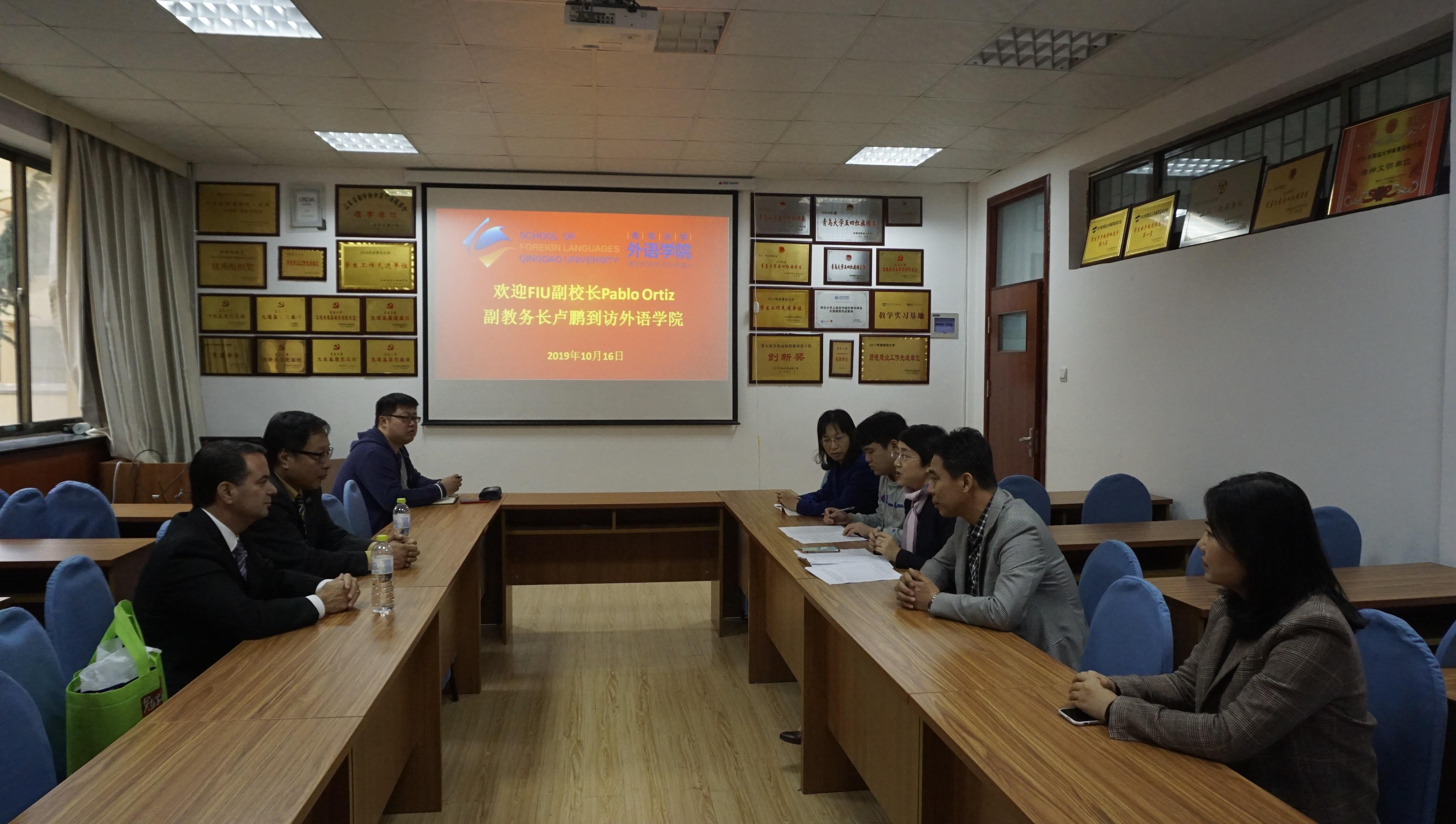 访问交流。学院党委书记王传永,院长卞建华,副院长宫英瑞,英语教育系主任秦硕谦,西班牙语系副主任栾勋业,外事助管范文楚参加座谈。