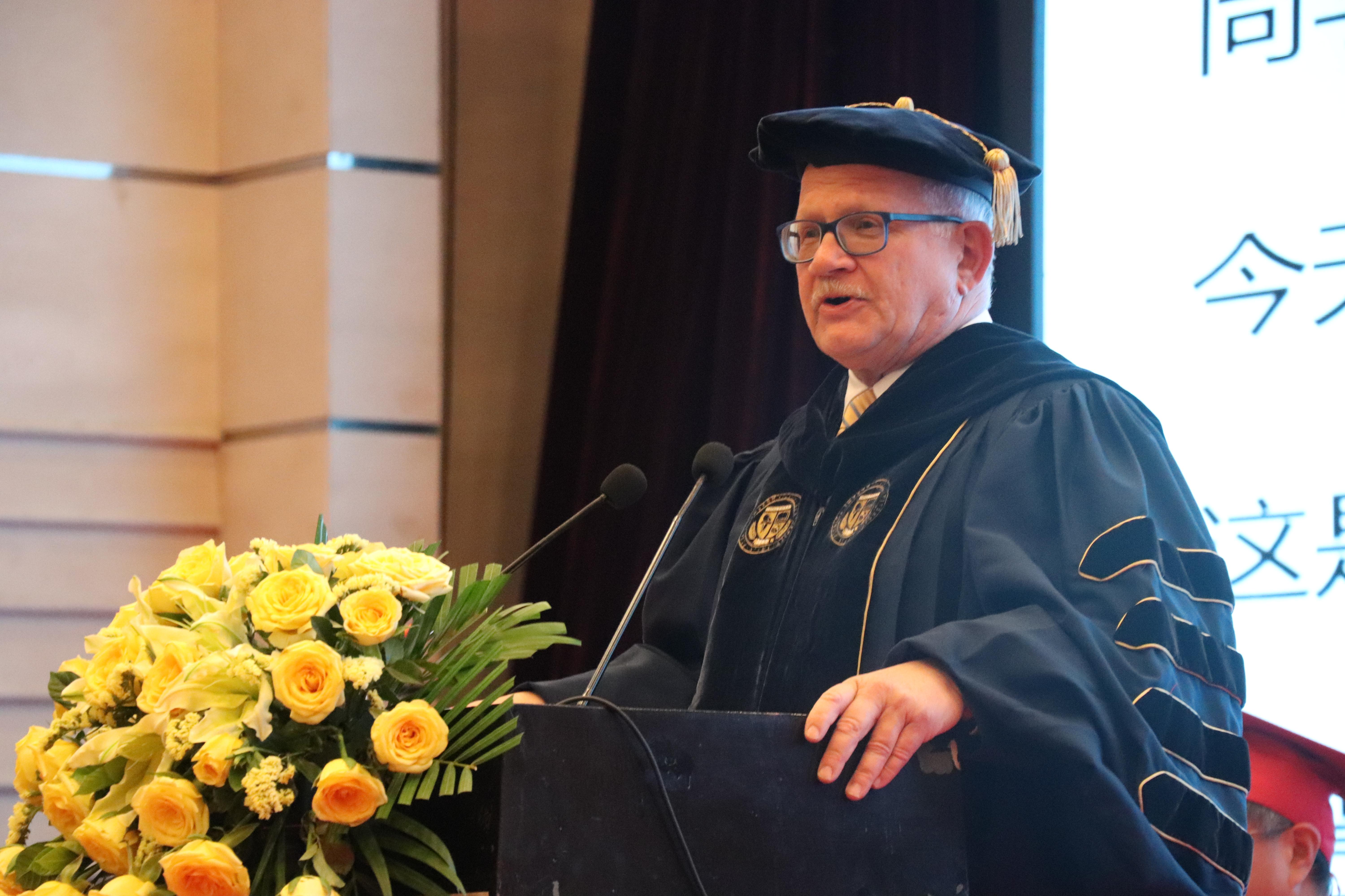 和佛罗里达国际大学之间的伙伴关系,特别是该双学位项目,是加强联系、确保未来经济繁荣的关键。他表示,我们生活在一个巨大变革、新兴技术层出不穷、发展势头迅猛的时代。同学们应在此大背景下把自己的才华和技能用于科研、教学和帮助他人,推动社会和世界的发展。