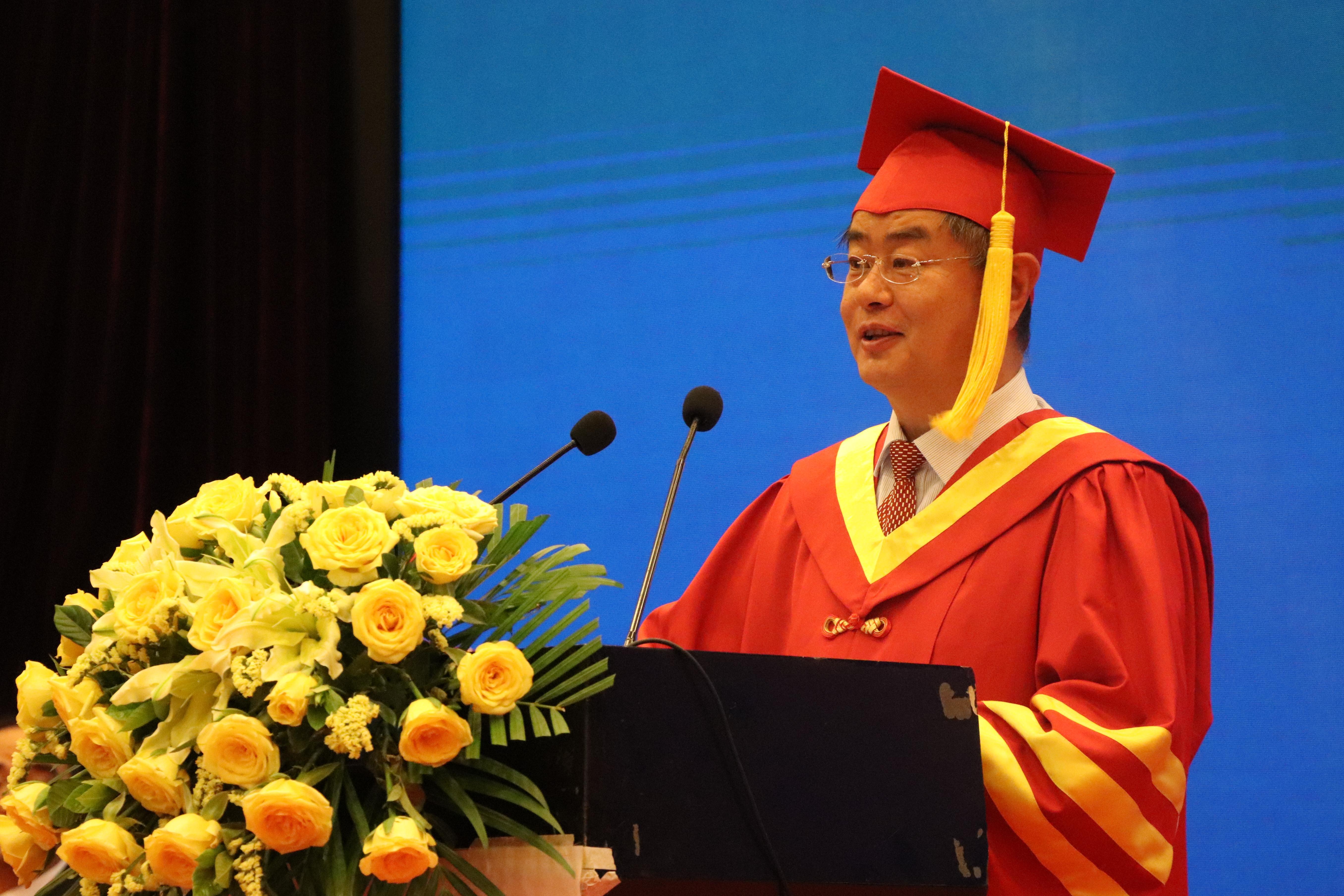 辛勤付出的教职员工、家长亲友们表示感谢,并介绍了双方联合举办西班牙语本科双学位教育项目的进展情况。同时,他为今年考取北京外国语大学、上海外国语大学等名校研究生或获得巴塞罗那自治大学、马德里康普顿斯大学等著名大学的留学资格的优秀毕业生点赞。最后,夏东伟对毕业生们寄予殷切厚望。他指出,希望毕业生们牢记习近平总书记的嘱托,发挥专业所长,做中华文化的传播者,世界文化交流的推动者,为建设人类命运共同体贡献自己的智慧和力量。同时,传承和弘扬“爱国、进步、民主、科学”的五四精神,勇敢肩负起时代赋予的重任,积极拥抱新时代、奋进新时代,努力在实现中华民族伟大复兴中国梦的生动实践中放飞青春梦想,创造出无愧于母校、无愧于人民、无愧于时代的辉煌业绩!