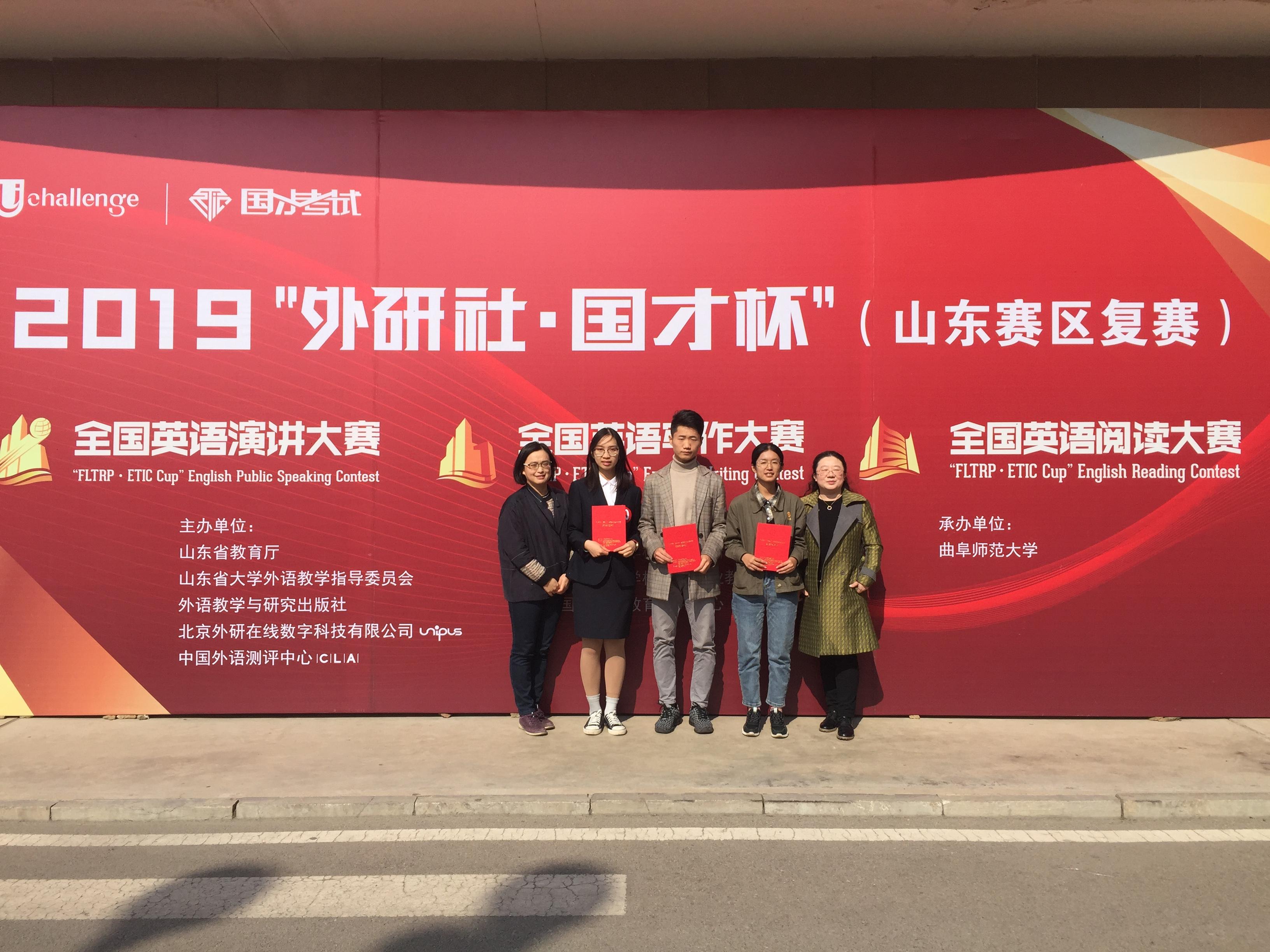 专业组分别参加了写作、阅读、演讲大赛。经过两天的角逐,李奇英获得写作大赛一等奖,韩通获得阅读大赛一等奖,张露茜获得演讲大赛二等奖。吕云、徐平、潘劲松三位老师获得优秀指导教师称号。来自全省16地市、近70所高校的400余名选手参加了本次大赛。
