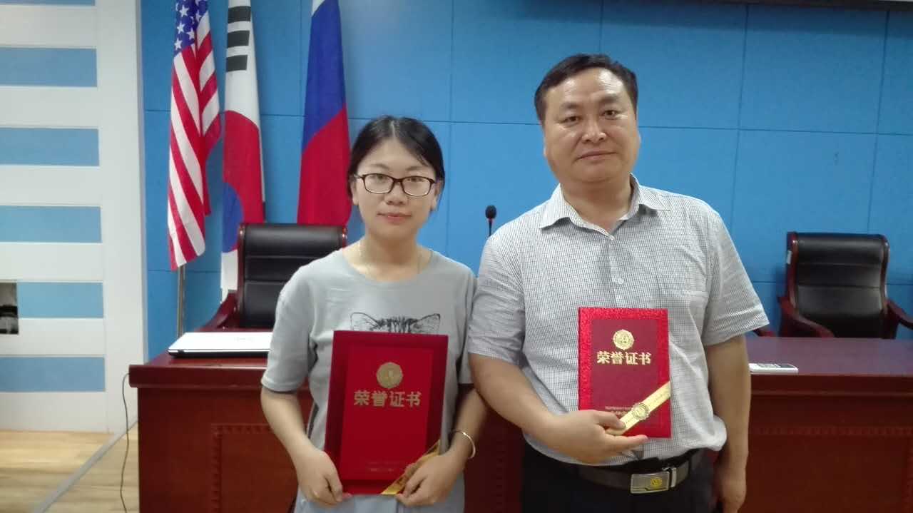 马敏同学以出色表现荣获二等奖。韩国首尔大学金星奎教授为其颁发了奖状。