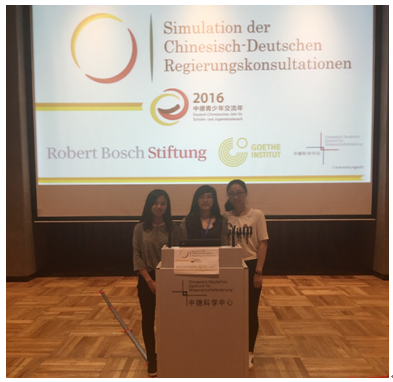 德语系研究生金红玉、肖梦楚、王佳惠参加此次活动,并分别扮演德国环境部政府官员、德国政府说客、德国“图片报”记者的角色。