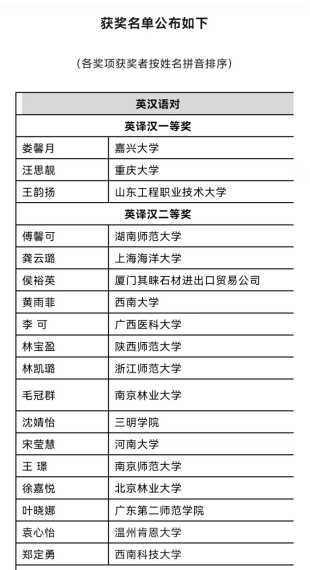 (部分获奖名单)