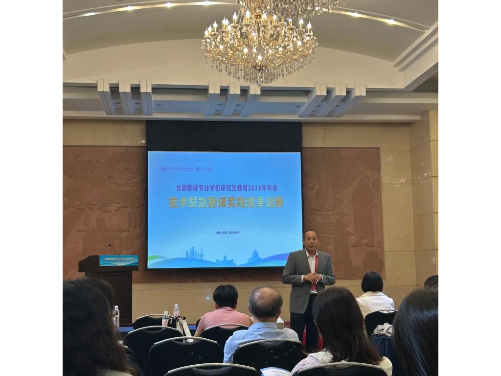 翻译系副主任管新潮和北京外国语大学高级翻译学院院长任文依次作报告,围绕智能语言、翻译认知重塑、AI赋能翻译教育、项目制师资培养、高端翻译人才和DTI培养路径等方面分享了前沿经验和成果。