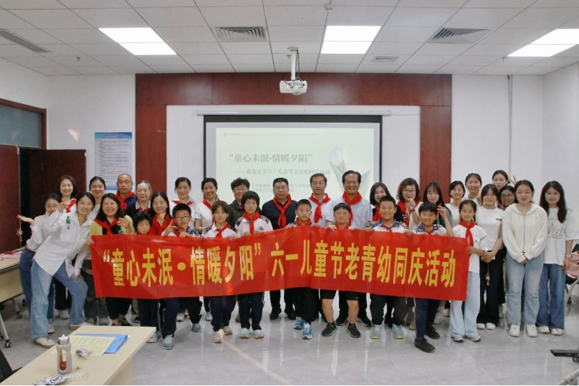 学生及青岛天山小学学生代表三代人共聚一堂,以一场跨越年龄的温情对话,用艺术展演、文化体验与代际互动的方式,共同庆祝这个别样的六一儿童节。