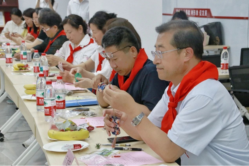 在“寄语未来”手工环节中,大家互帮互助,共同完成手工作品。老教师手把手教学生们缝制端午节香包,穿针引线间传递传统技艺;师生合作绘制明信片,各位老师为同学们写下殷切期望,同学们也将真挚的祝福送给长辈。