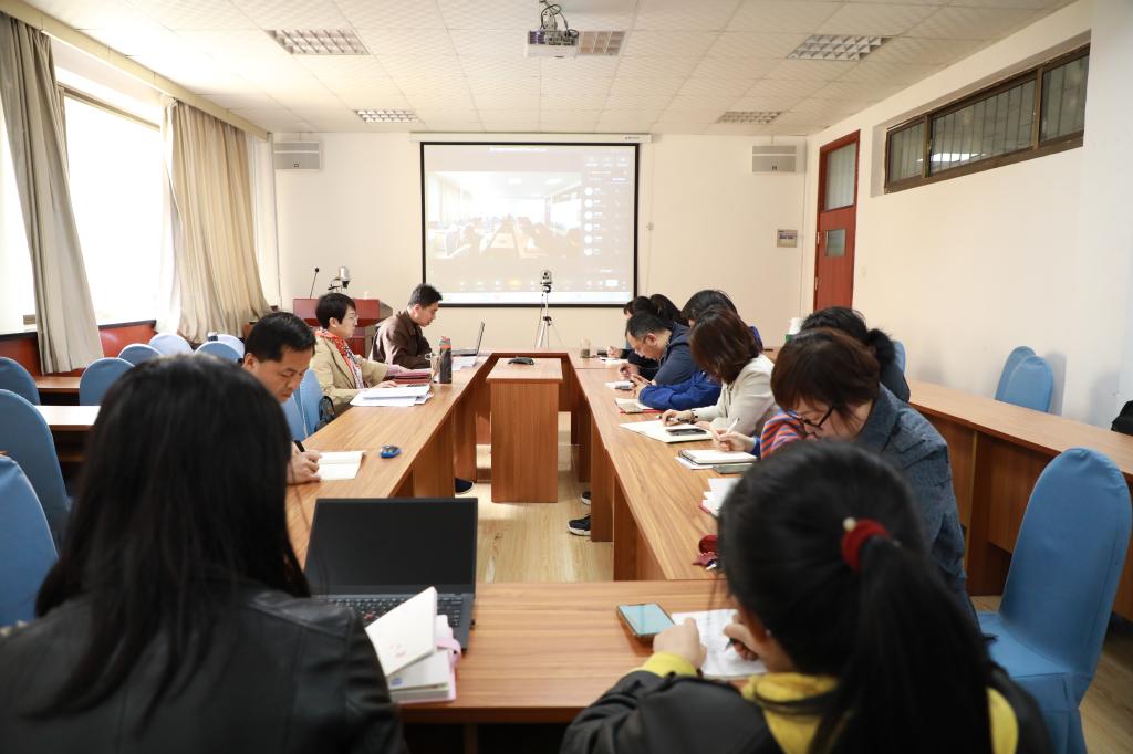 党委召开党史学习教育动员会,学院党政领导、各党支部书记在博文楼312会议室参加现场会,其他党员同志通过钉钉线上参加视频会议。