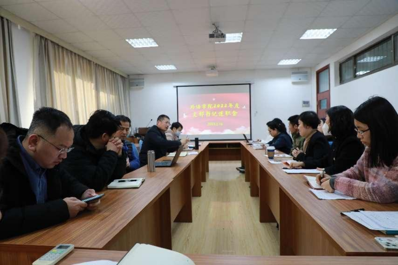2022年度党支部书记述职评议会暨2023年第一次党支部书记例会在博文楼312会议室召开。院党委书记周伟主持会议,全体领导班子成员、各党支部书记及党支部委员参加会议。