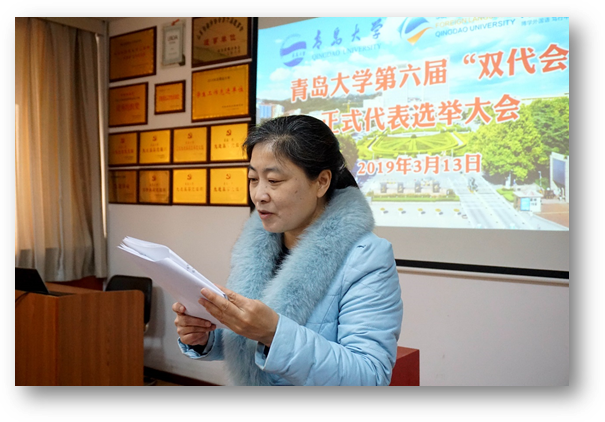 根据大会程序,王海青就学校批复的出席第六届“双代会”代表候选人建议名单以及每名候选人的简要情况,向大会作了汇报。