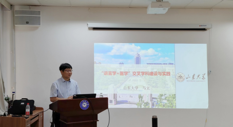 在博文楼312室举办讲座,主题为“‘语言学+医学’交叉学科建设与实践”,由山东大学马文教授主讲,各系系主任、副主任、学科负责人、研究中心主任、导师、青年博士和学生参加。医学部李冰副部长应邀参加。