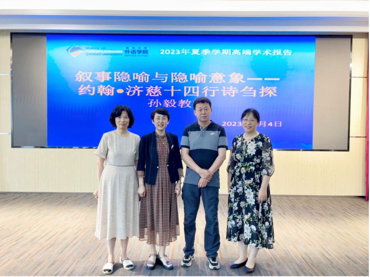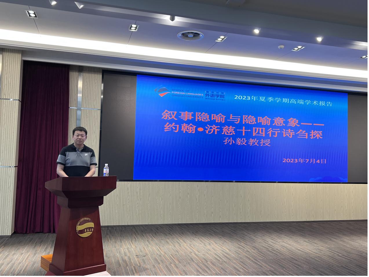 的各位老师同学十分高兴,感到意趣盎然。本次讲座,孙毅教授开创性地用认知隐喻理论方法解读外国文学作品。讲座聚焦于济慈十四行短诗,以隐喻意象为视角,叙事为途径,意象链构建为手段,以著名翻译家屠岸的《济慈诗选》为语料来源,结合当代隐喻学理论,着重分析诗歌中的叙事意象,在研究济慈诗歌的同时进一步阐明隐喻与故事、隐喻与叙事的相互关系,阐释隐喻叙事的认知、情感和语用三重功用。