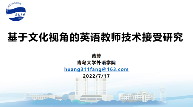 2022年7月17日上午,黄芳教授应邀为东北大学秦皇岛分校外国语言文化学院的师生做了题为《基于文化视角的英语教师技术接受研究》的学术讲座。此次讲座由惠良虹教授主持,以腾讯会议的方式进行,吸引了东北大学秦皇岛分校及其他院校的百余名师生参加。东北大学秦皇岛分校外国语言文化学院赵玉容院长及三上悠亚在线