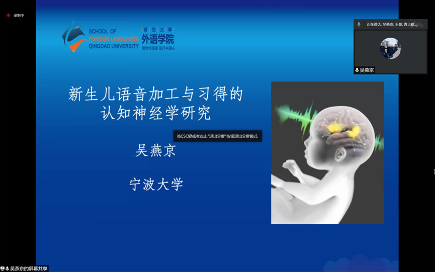 在两个多小时的学术研讨中,吴燕京博士为在座师生详细介绍了情绪加工和音素分辨的基本理论和实证发现,并通过具体的实验研究介绍新生儿情绪语言加工、新生儿音素学习领域内的重要问题和前沿发现,整个讲座学术氛围浓厚,使参会师生获益匪浅。