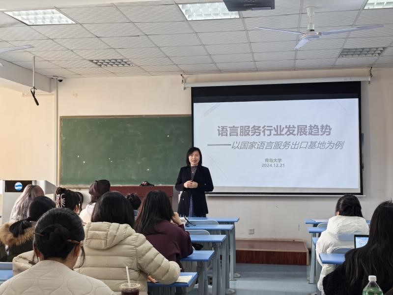 2024年12月21日—22日,学院举办行业发展前沿讲座暨MTI导师培训。讲座专家包括华为翻译中心创始主任陈圣权、中冶东方工程技术有限公司翻译中心主任赵忠会、中译语通科技(青岛)有限公司语言科技事业部翻译技术部资深翻译郭昆及译国译民集团董事长林世宋,学院MTI导师、青年骨干教师和2024级MTI学生参加了讲座。各位专家凭借丰富的行业经验,为学院师生介绍了翻译行业的新趋势、新要求,开启关于外语人才培养与发展的深度交流之门,助力学子们更好地把握未来翻译职业方向。