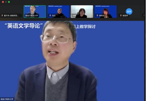 活动伊始,主持人湖南师范大学刘白教授强调“英语文学导论”在英语专业教学中的重要性,以及当前高校在该课程教学中面临的挑战与困惑。在教研活动的分享环节,四位教师分别就诗歌、小说、戏剧和文论的教学进行了示范说课与讲课。曾艳钰教授和杨金才教授针对每位教师的分享进行了深入点评,肯定了教学中的亮点,同时提出了宝贵的建议,指出课程教学中构建知识体系、进行文本细读、开展课程思政、运用个性化教学方式的重要性。互动环节中,在线教师积极参与,就拓展阅读资料来源、课程学分安排、个性化教学等问题展开了热烈交流。